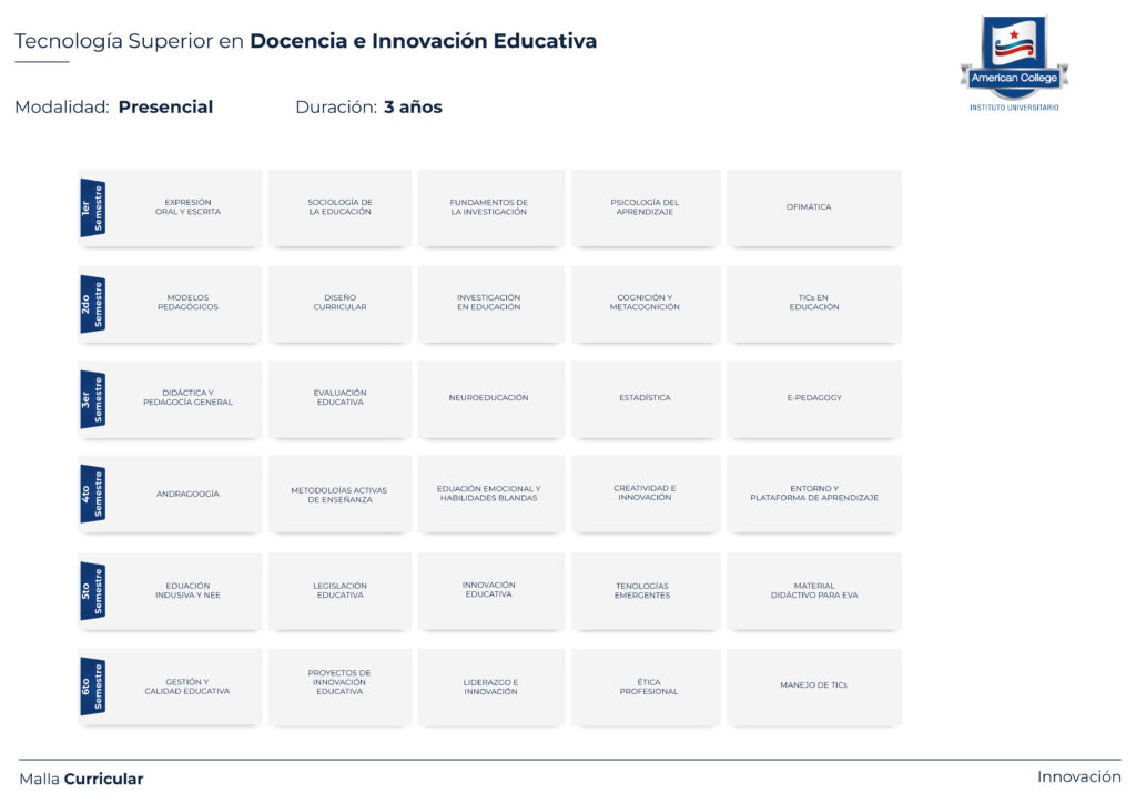 Sub-Director de Carrera: A todos los estudiantes de la carrera en Docencia e Innovación Educativa, les doy la más cordial bienvenida a esta bella Institución que les acoge con cariño y los acompañará en la cristalización de sus sueños. En el Instituto Universitario American College, con 26 años de experiencia en las diversas carreras de tecnología, tendrán la oportunidad única de formarse profesionalmente como Docentes e innovación educativa, desde los modelos pedagógicos actuales, desde la didáctica y pedagogía, psicología del aprendizaje, sociología educativa, la innovación educativa, investigación educativa, educación inclusiva y NEE, liderazgo educativo, tecnologías emergentes y el manejo de las TIC, etc. Nuestra apertura y diversidad constituye la mayor riqueza para brindar la mejor formación acorde las nuevas necesidades educativas y tendencias del mundo actual. Sin ninguna duda, las experiencias que vivirán en el proceso formativo, formarán parte de sus más bellos recuerdos en esta etapa de la vida. Empezar una carrera trae consigo desafíos, responsabilidades, retos tanto para estudiantes, docentes, directivos y familiares más cercanos, sin embargo, embarcarse en el camino de la educación, representa una nueva oportunidad para construir, renovar, crecer, aprender, acompañar, formar personas responsables, preparadas para afrontar el futuro con éxito; oportunidad para alcanzar las metas y objetivos propuestos, pero sobre todo, una oportunidad para formar verdaderos seres humanos con razón y corazón, capaces de relacionarse con nuestros semejantes de manera empática, transparente, justa y altruista. Quienes hacemos el personal docente de la carrera en Docencia e innovación educativa, les abrimos toda nuestra experticia y haber académico para compartir con ustedes una nueva experiencia, cargada de desafíos y gratificaciones ya que tenemos la responsabilidad de acompañar a todos quienes han optado por esta noble vocación de ser docentes de corazón. Su presencia nos compromete a generar motivadoras estrategias de aprendizaje que ayuden a comprender, descubrir, razonar, convivir, trabajar en equipo. Como decía Jean Piaget “la principal meta de la educación debe ser crear hombres y mujeres que sean capaces de hacer cosas nuevas, no simplemente repetir lo que han hecho otras generaciones”. Quiero aprovechar esta oportunidad para recordar que la educación es un proceso de aprendizaje permanente que abarca las distintas etapas de la vida de las personas, cuyo fin es alcanzar su desarrollo espiritual, ético, moral, afectivo, intelectual, artístico y físico, mediante la transmisión y el cultivo del conocimiento y destrezas en nuestra vida cotidiana. Bienvenidos nuevamente a esta familia institucional, no estás solo, tendrás todo el acompañamiento que necesitas para salir adelante. Para finalizar, les dejo este pensamiento del educador brasileño, Paulo Freire, “La educación no cambia al mundo, cambia a las personas que van a cambiar el mundo”.